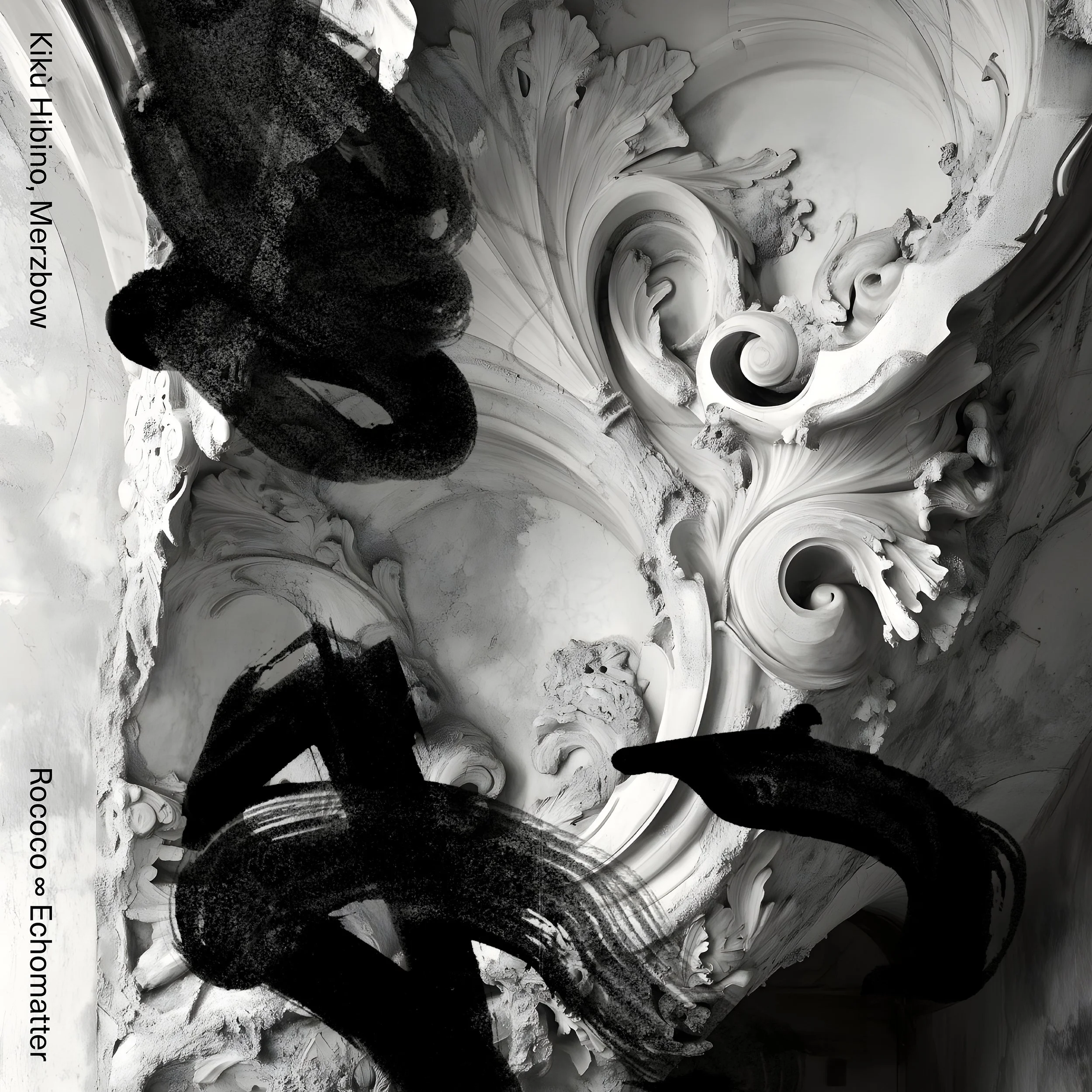 After traversing ambient on 2022’s Fell to Fern and beatmaking on the 2024 release Sky Trajectories, Hibino proposed an abrasive partnership to Akita. On the full-length for recurring label home Superpang, Rococo ∞ Echomatter, the duo present the fruits of their labor. They decided on the title before beginning work, which sparked while Hibino was visiting Italy for a showcase. “In the Vatican and in Florence, I was struck by the ceiling decorations — their endless expansion and excessive ornamentation,” he says. “What stayed with me was a structure with no place for the eye to rest, a movement that seemed to proliferate without end. To express that feeling, I added the infinity symbol.” Endlessness manifests as a structural principle for how noise is organized.